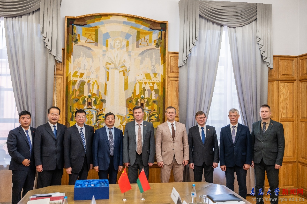 在白俄罗斯访问期间,代表团首先访问了白俄罗斯国立大学,校长安德烈·卡洛尔与魏志强举行了工作会谈。双方共同回顾了两校合作的历史与取得的成果,并决定面向物理、数学和化学等基础学科领域,合作开展科学研究、共同发表论文、申报科研项目和学生联合培养,推进在应用物理与光学等领域合作申报中外合作办学项目。双方还就青岛大学加入中白两国基础科学合作研究中心,以及开展医学领域人才联合培养进行了深入讨论。会谈前,代表团参观了白俄罗斯国立大学地理科学博物馆。