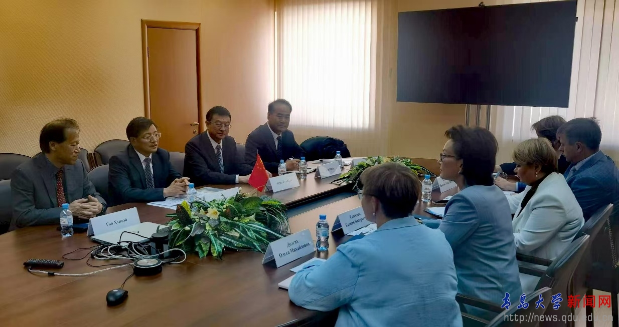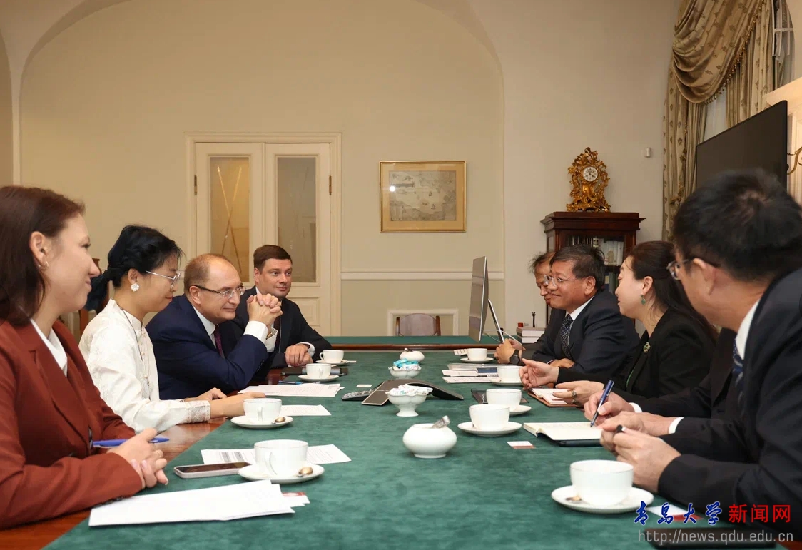代表团还拜会了联合国教科文组织教育信息技术研究所和俄中教育科技基金会。教育信息技术研究所董事会主席展涛表示,欢迎青岛大学国际政治和俄语等专业学生通过申请国家留学基金委项目赴该组织实习。双方同意依托青岛大学医学和计算机等优势学科资源,推动在特殊人群医护、医养健康教育,以及数字化信息技术等方面的交流合作。在与俄中教育科技基金会工作会谈中,基金会副会长崔珊表示将继续大力协助推进青岛大学与俄罗斯高校的合作联系,开展面向俄罗斯名校的本科学生预科培养项目、硕博联合培养、境外办学和文化交流活动。