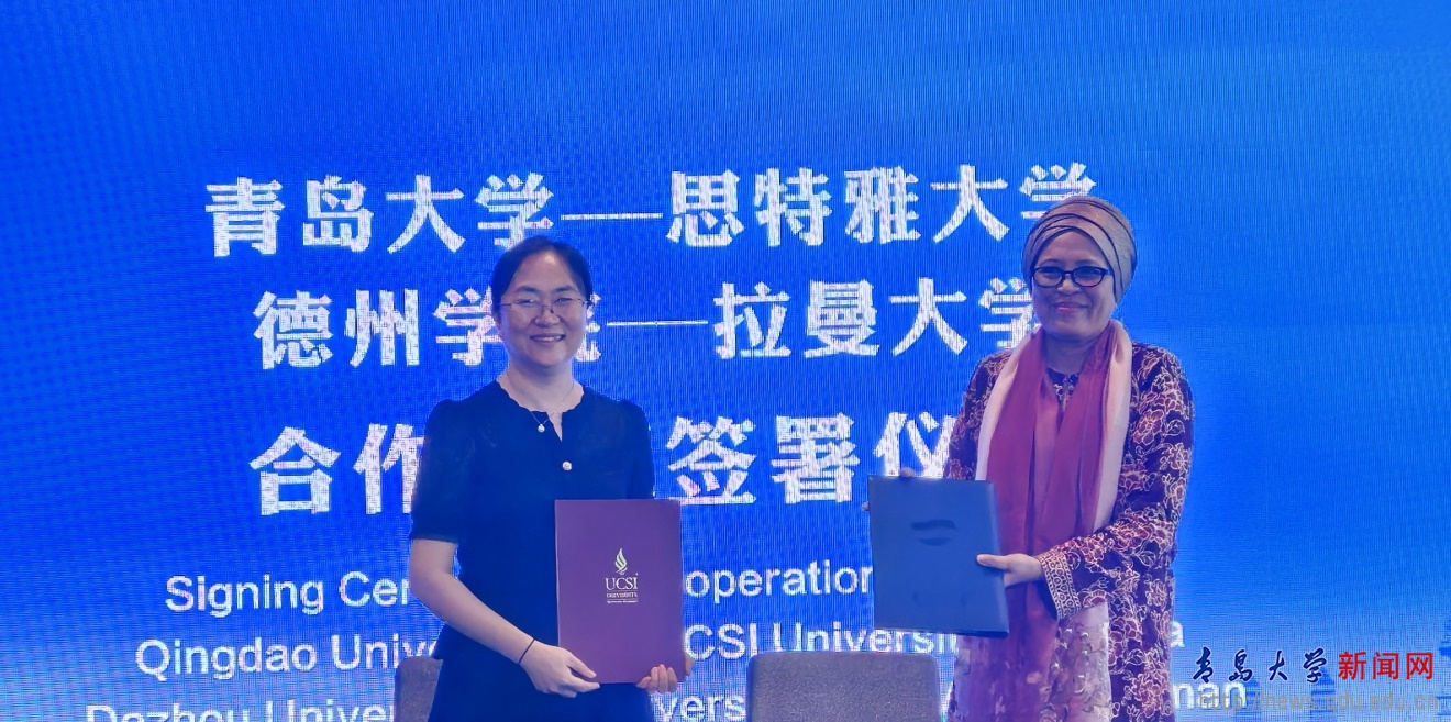 在启动仪式上,何校长与马来西亚思特雅大学校长茜蒂·哈米莎签署了《青岛大学与思特雅大学合作备忘录》。山东省委书记林武,省委常委、秘书长范波,省委教育工委委员、省教育厅党组成员、副厅长李鹏出席山东-马来西亚教育合作重大项目启动仪式,见证签约。马来西亚科技与创新部长郑立慷等马方代表出席活动。